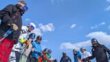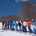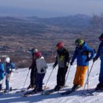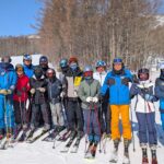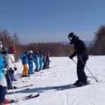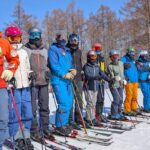 レッスンでは、湿雪の中でも正確なライン取りができるよう、ブラシポールを活用しながら重心移動の方向やスキーの走らせ方を学んでいきます。一本一本のターンの質を高めるために、参加者の皆さんは“エレガント”という言葉の本質を体で感じながら滑りを磨いています。